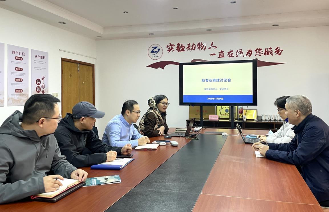 2025年11月24日下午,我校实验动物中心与安全性评价研究中心(以下简称“安评中心”)联合召开实验动物相关专业设置可行性论证会。本次会议由安评中心主任黄文海主持。安评中心陈云祥、陈国灿、吕万强等专业技术人员,与实验动物中心副主任石巧娟、教师戴方伟等共同参会。