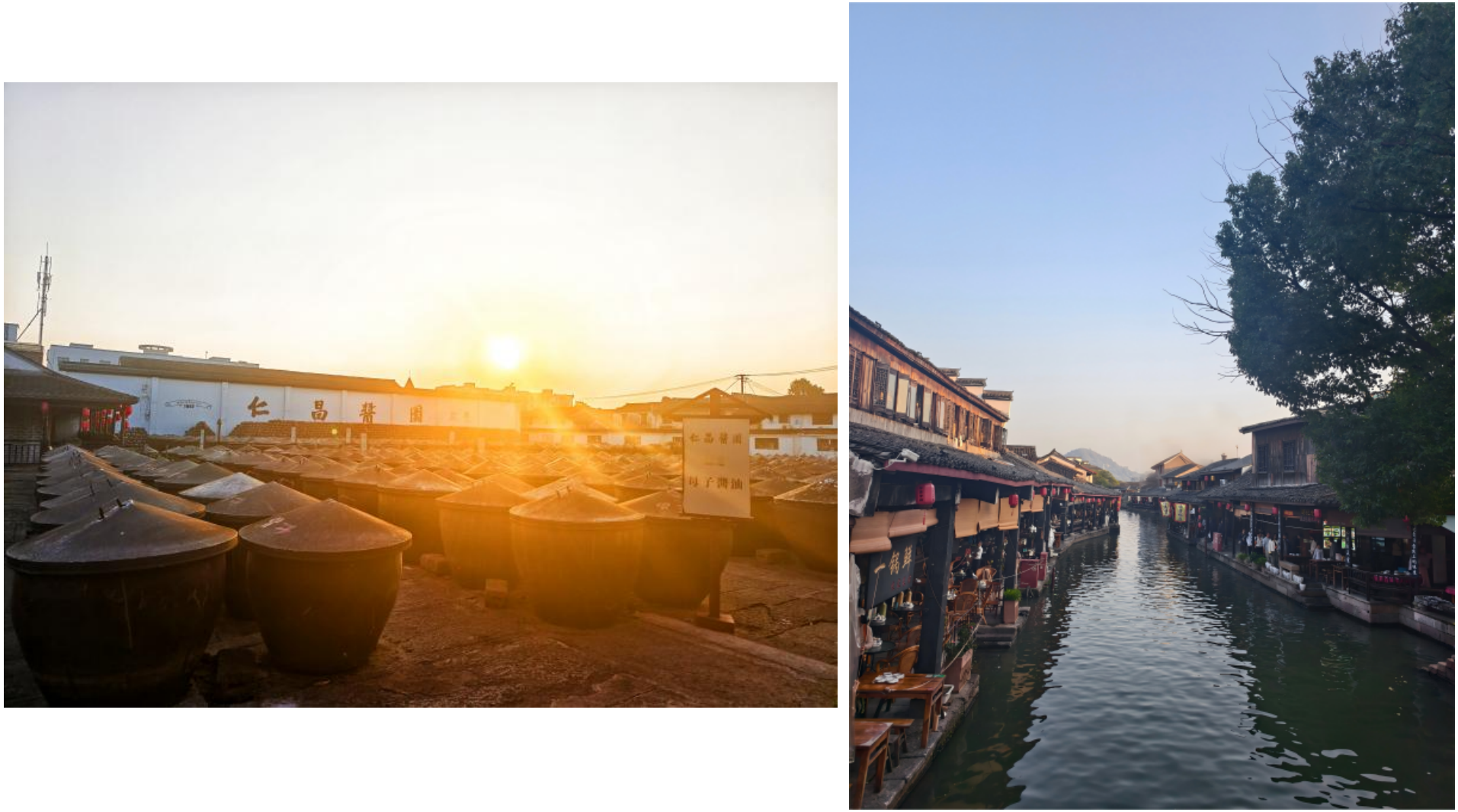 大家分组开启了一场精彩纷呈的文化探秘之旅。有的乘坐乌篷船,悠然穿梭于蜿蜒的河道之间,看两岸白墙黛瓦的古建筑倒映在水中,波光粼粼,如梦如幻;有的流连于师爷馆、石雕馆,在那一件件展陈文物中,细细解读绍兴师爷文化的独特密码,感受着古镇深厚的历史底蕴;更多的人则被沿街的手作匠人吸引,扯白糖技艺传承人现场展示“糖丝变龙”的绝活,只见他手法娴熟,将熬好的糖浆在木棍间来回拉扯,不一会儿,原本晶莹剔透的糖浆就变成了细如发丝的糖丝,再经过巧妙地缠绕,一条栩栩如生的“糖龙”便呈现在大家眼前,引得众人纷纷鼓掌叫好。酱园里,整排的酱缸阵列整齐排列,诉说着“绍兴三缸”的传承故事,浓郁的酱香弥漫在空气中,让人仿佛能闻到岁月沉淀的味道。