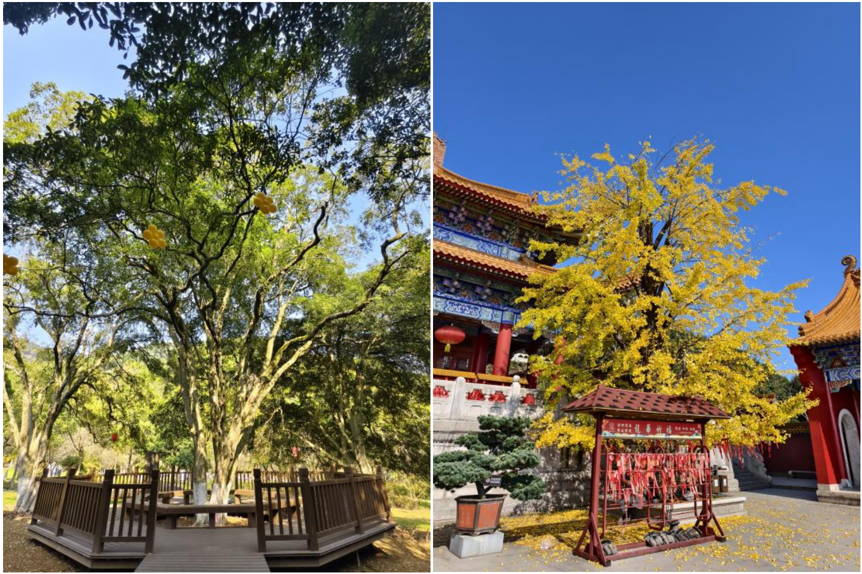 大家沿着蜿蜒曲折的登山步道拾级而上,脚步轻盈而欢快。沿途不时停下脚步,用相机捕捉那层林尽染的秋日画卷,每一片树叶都像是大自然用画笔精心勾勒的杰作,红的似火,黄的如金,绿的犹翠,交织出一幅五彩斑斓的秋日盛景。在景区最高处的“香林禅寺”,大家围坐在古银杏树下,在静谧的氛围中,聆听寺院悠扬的钟声与山风合奏的自然交响,内心的浮躁与疲惫瞬间消散无踪。